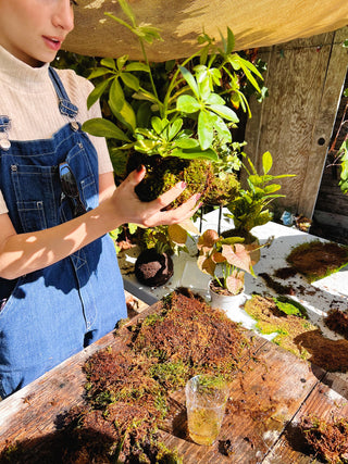 In this experience, we will dive into the Japanese art of kokedamas. We will first talk about the fascinating history of this old art form, as well as how it is related to Japanese customs and the philosophy of wabi sabi. Then, I will show you how to make your first kokedama. Making kokedamas involves turning peat moss into a soil ball and then wrapping it in sheet moss to create a self sustaining pot to hold your plant. Each person will have their own station to create TWO kokedamas, that will eventually be taken home.